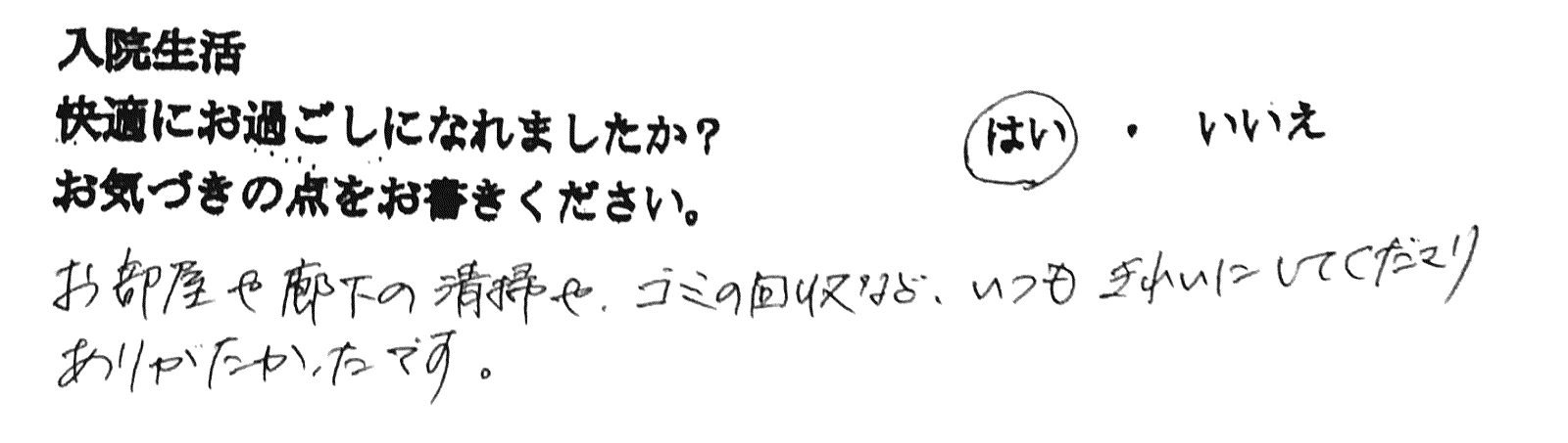 対応してくださり、とても安心して過ごすことが