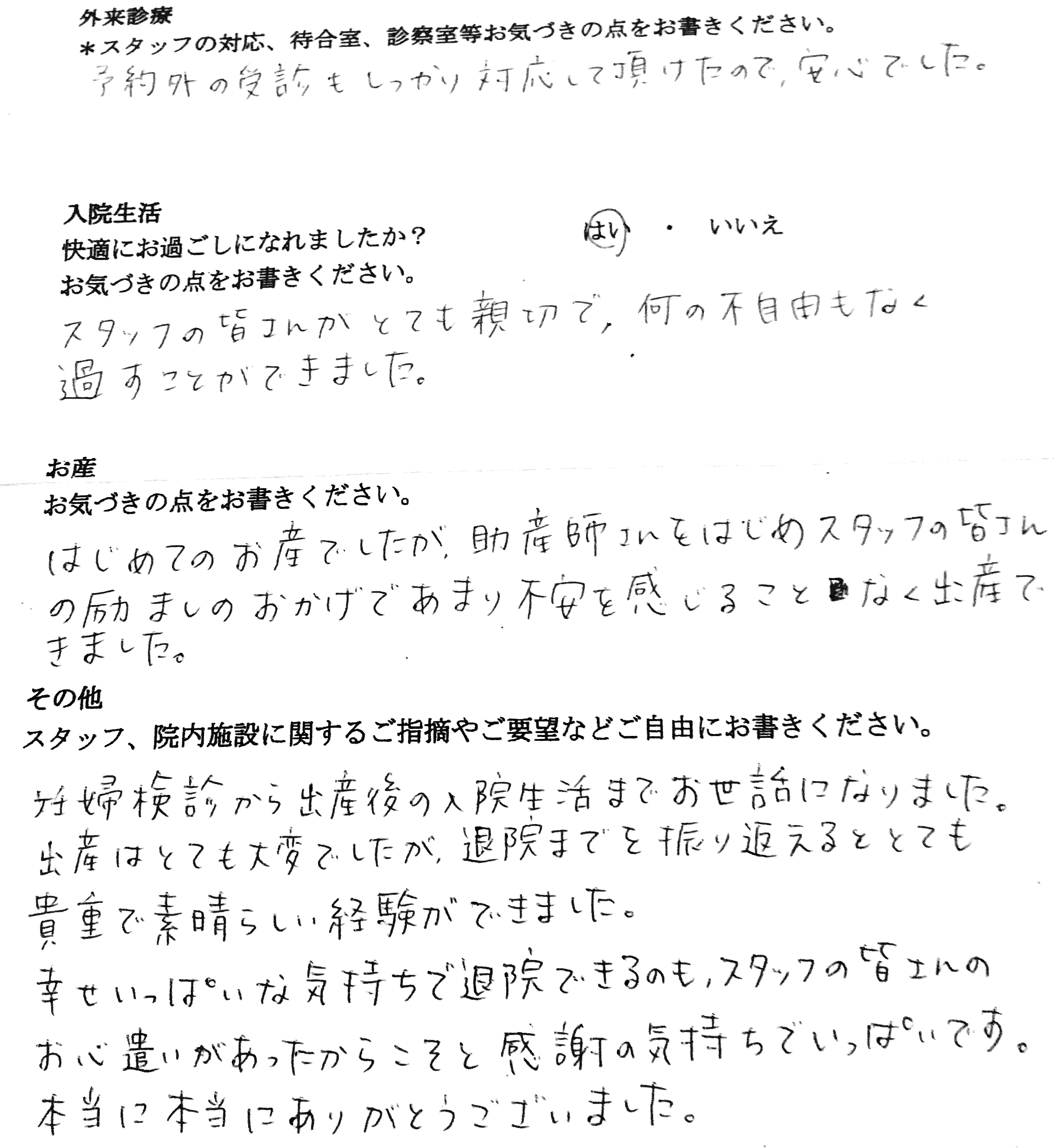 HOME > 当院ご出産のママの声 > 富士市・武田産婦人科ご出産のママの声 (NO.168)