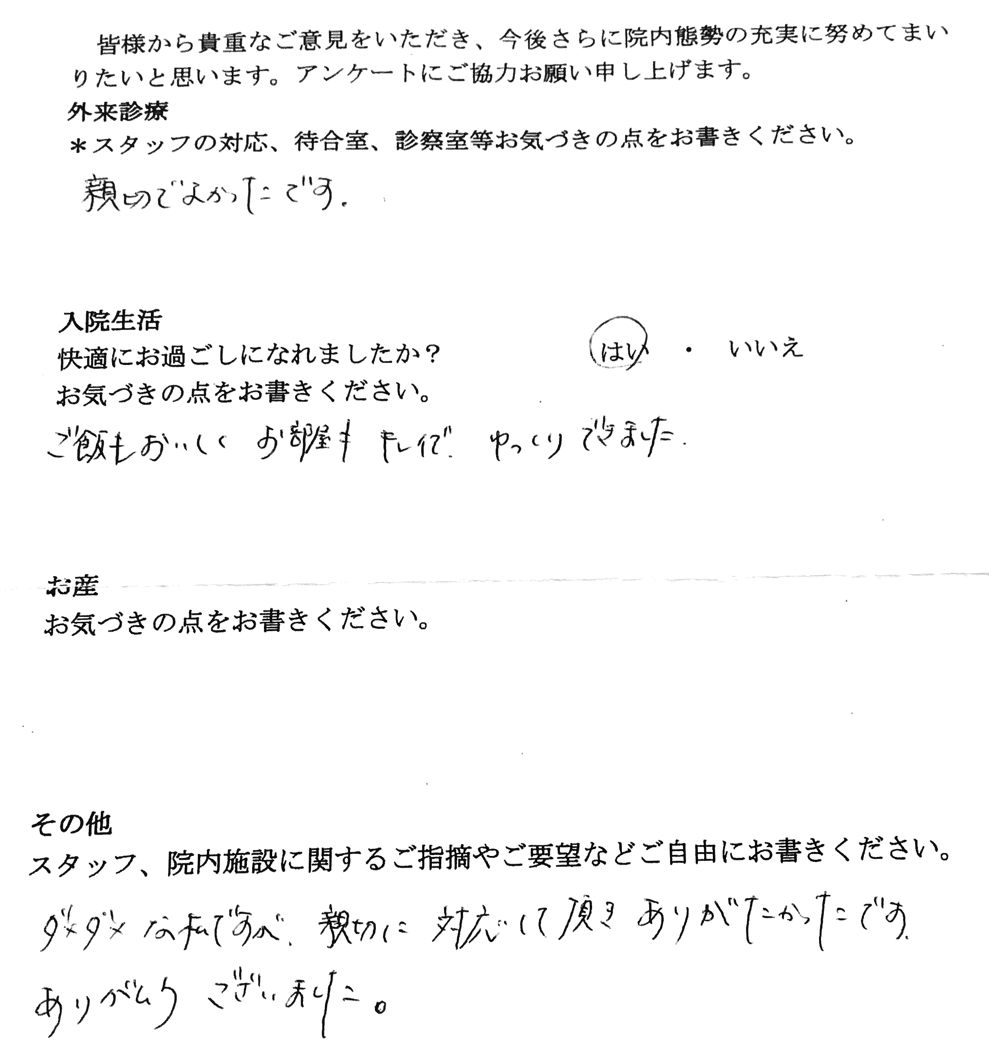 【スタッフへのご感想】