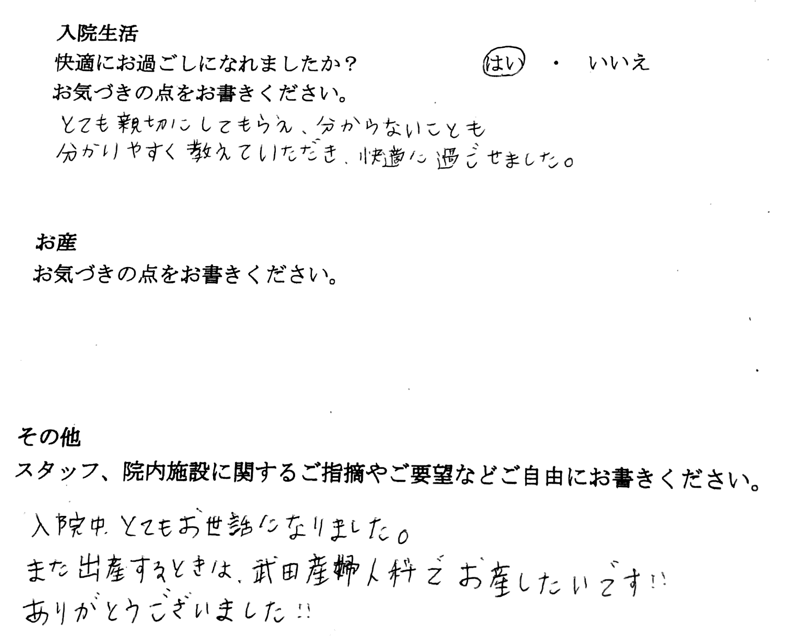 富士市・武田産婦人科ご出産のママの声 (NO.211)