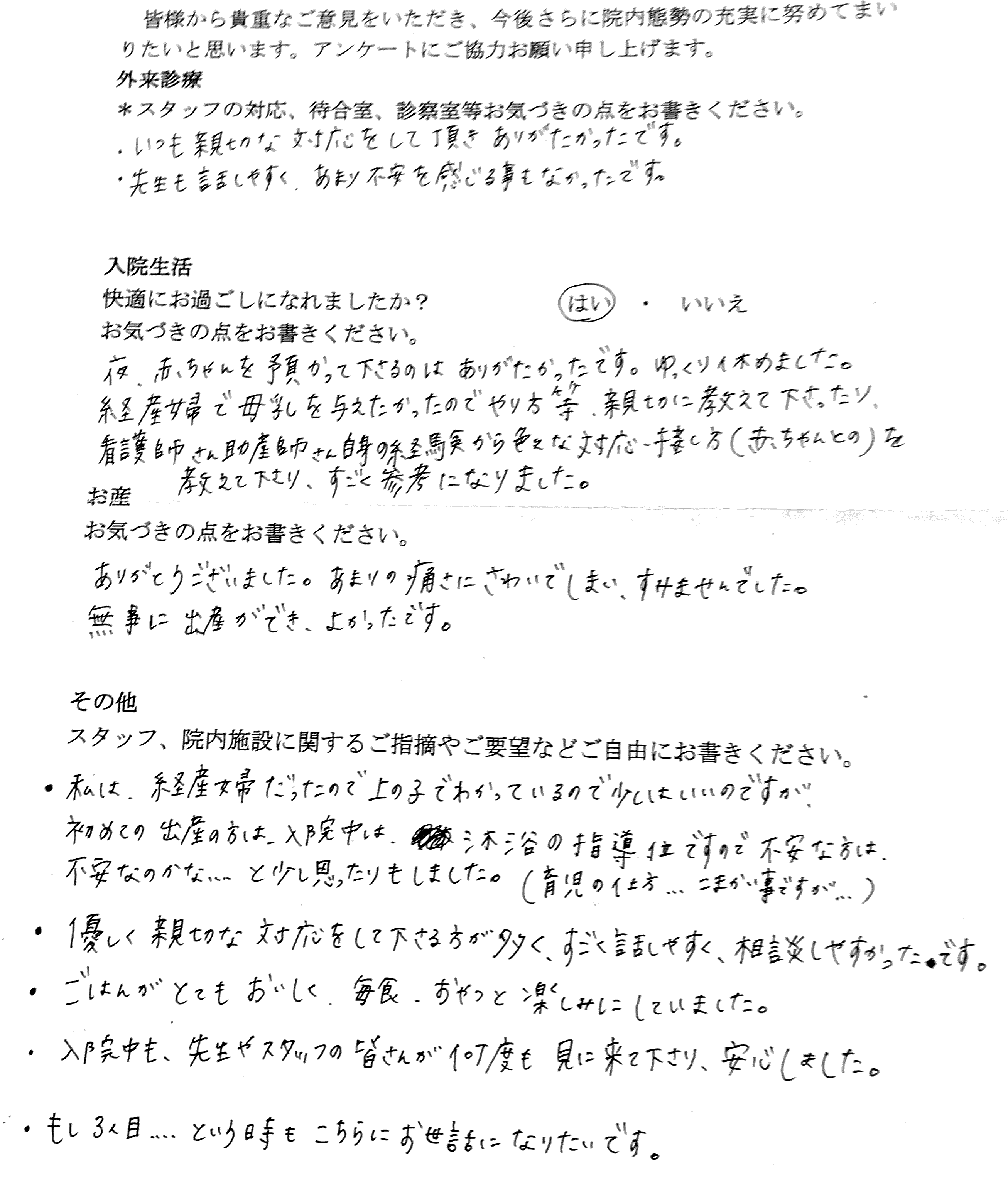 HOME > 当院ご出産のママの声 > 富士市・武田産婦人科ご出産のママの声 (NO.215)