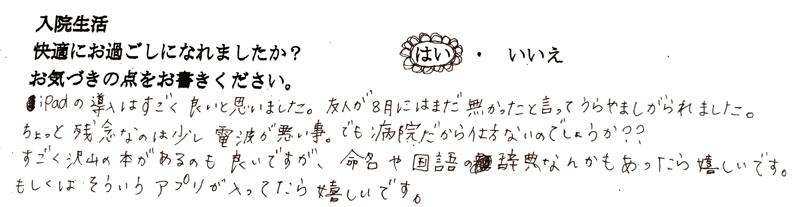 【入院生活へのご感想】