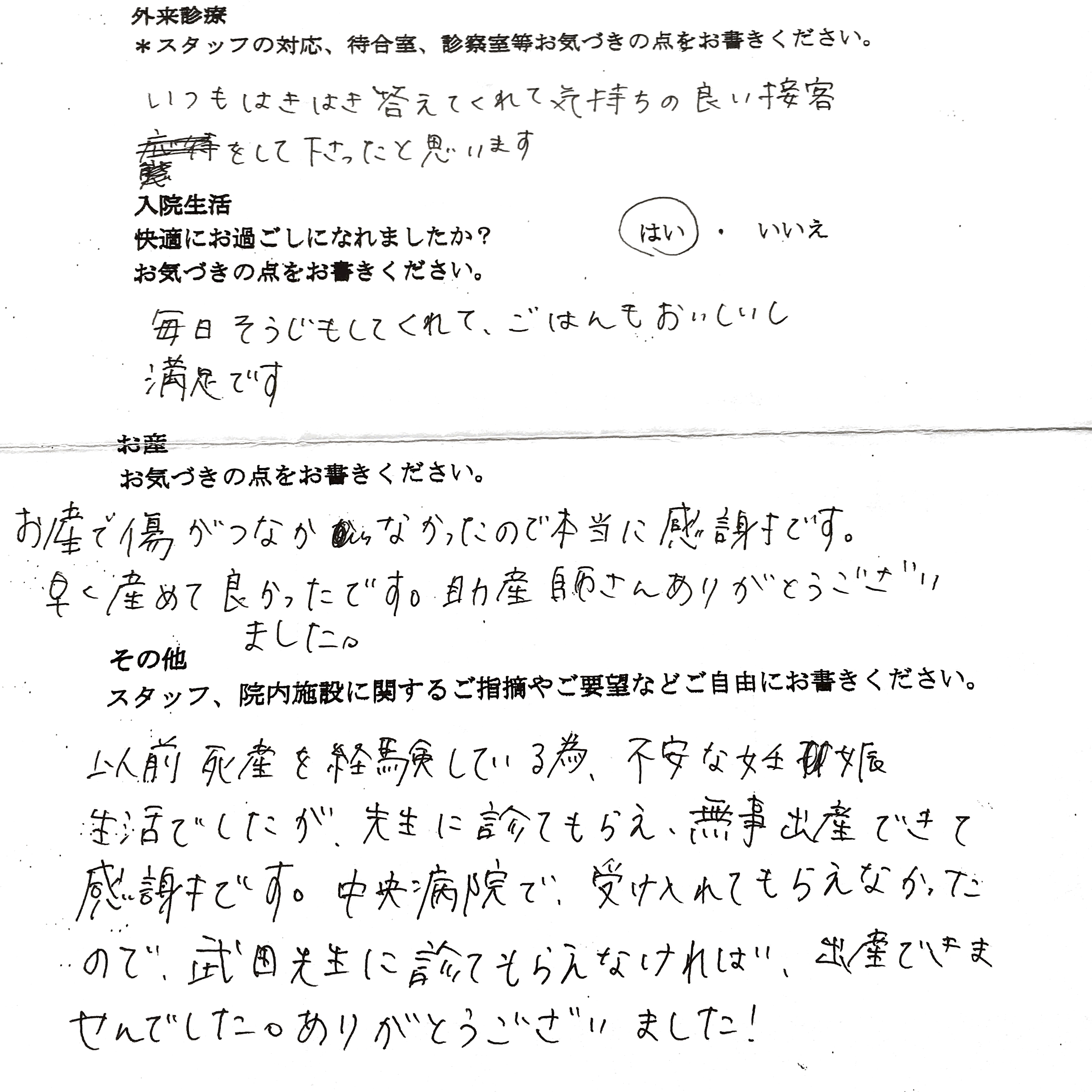 富士市・武田産婦人科ご出産のママの声 (NO.223)