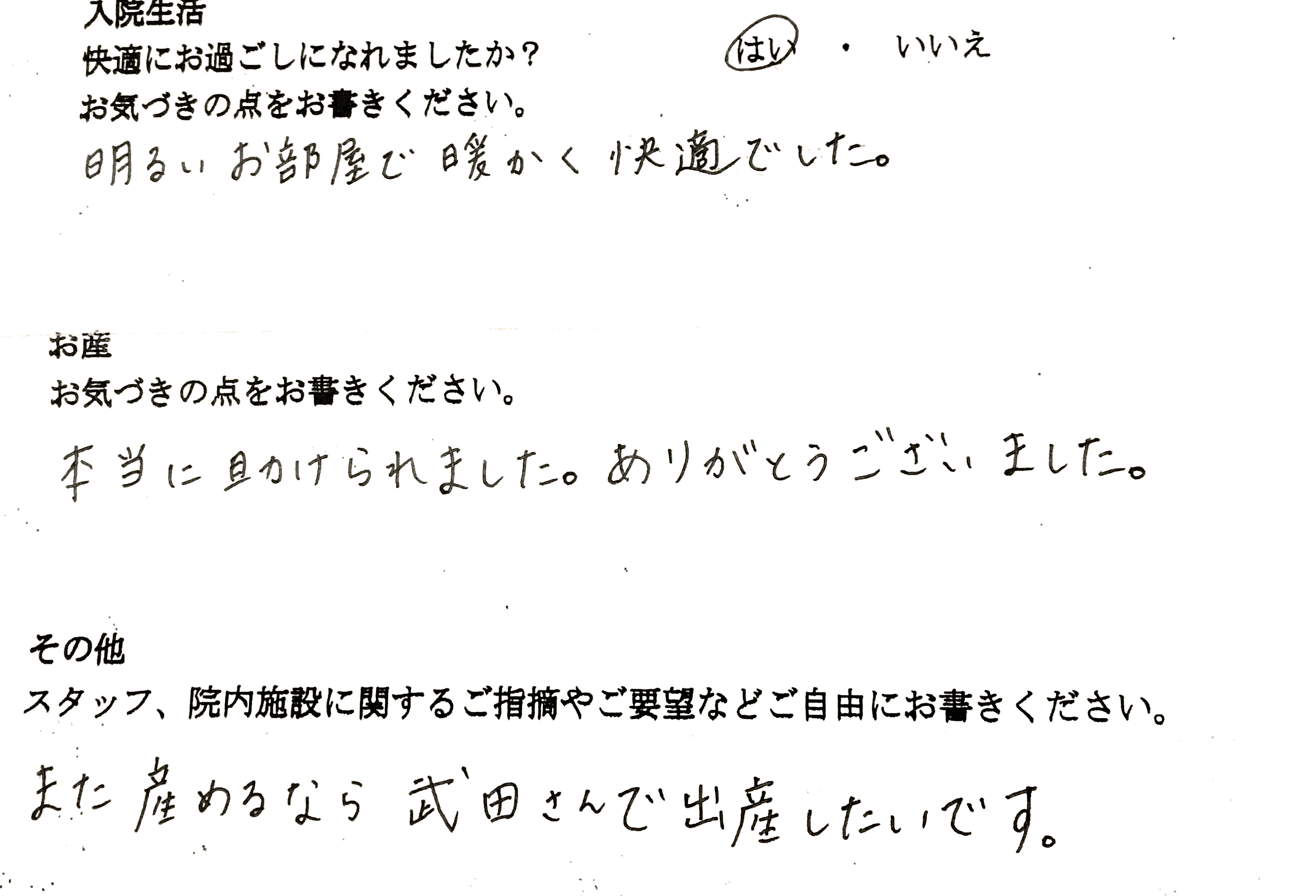 HOME > 当院ご出産のママの声 > 富士市・武田産婦人科ご出産のママの声 (NO.232)