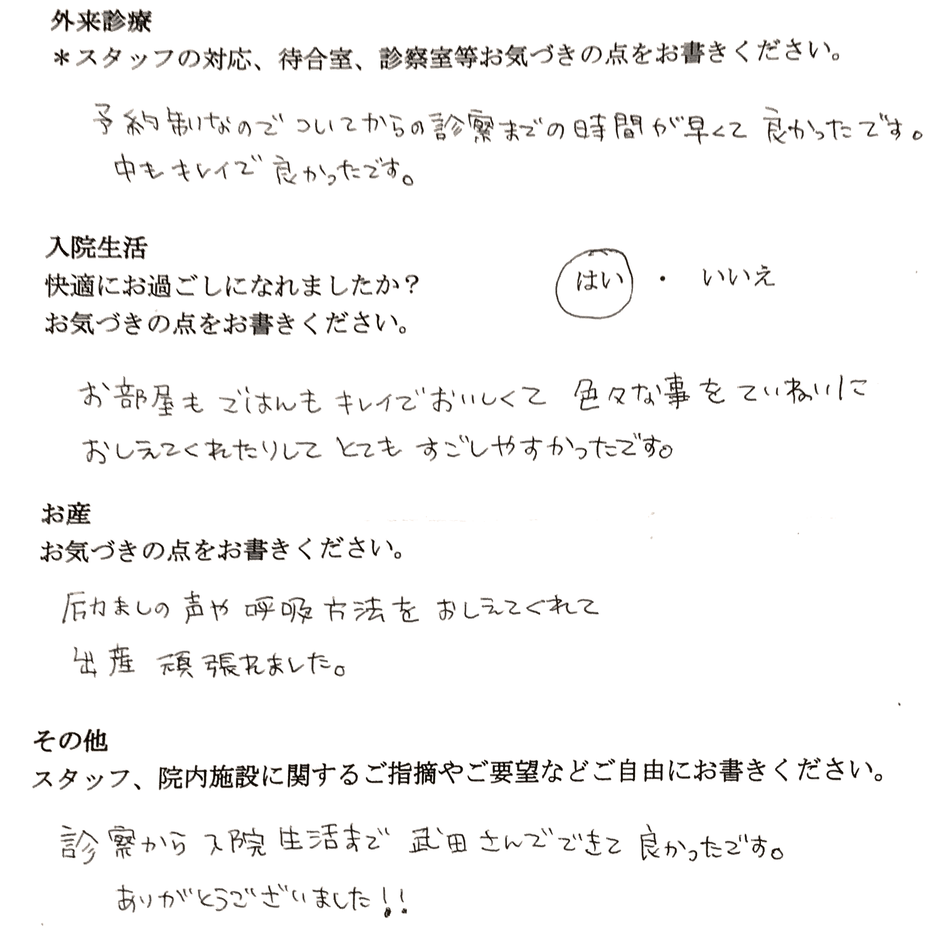 HOME > 当院ご出産のママの声 > 富士市・武田産婦人科ご出産のママの声 (NO.242)