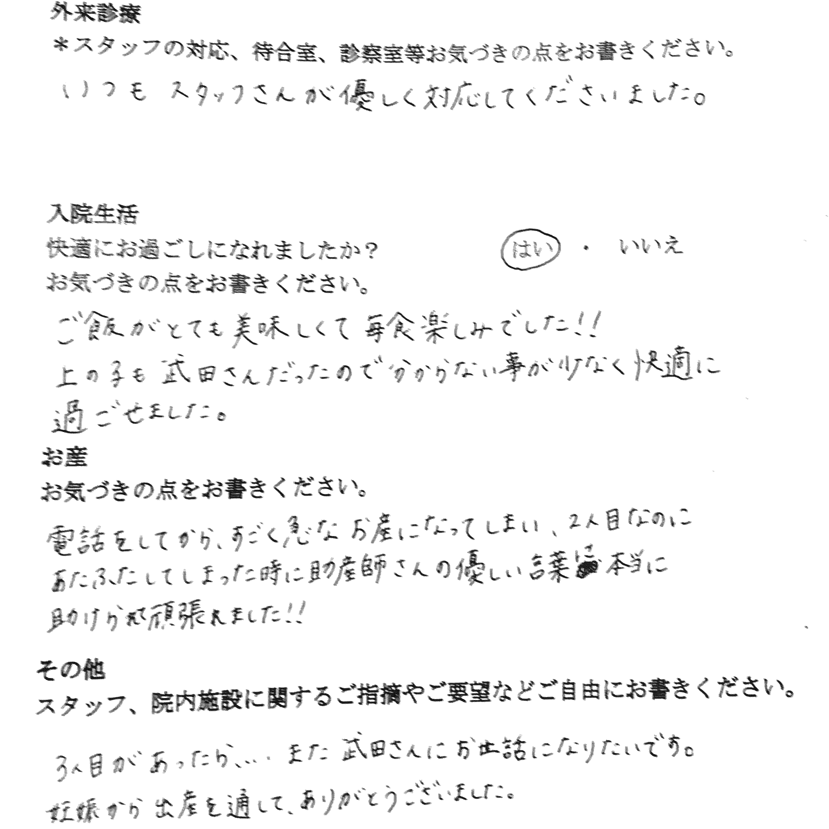 富士市・武田産婦人科ご出産のママの声 (NO.247)