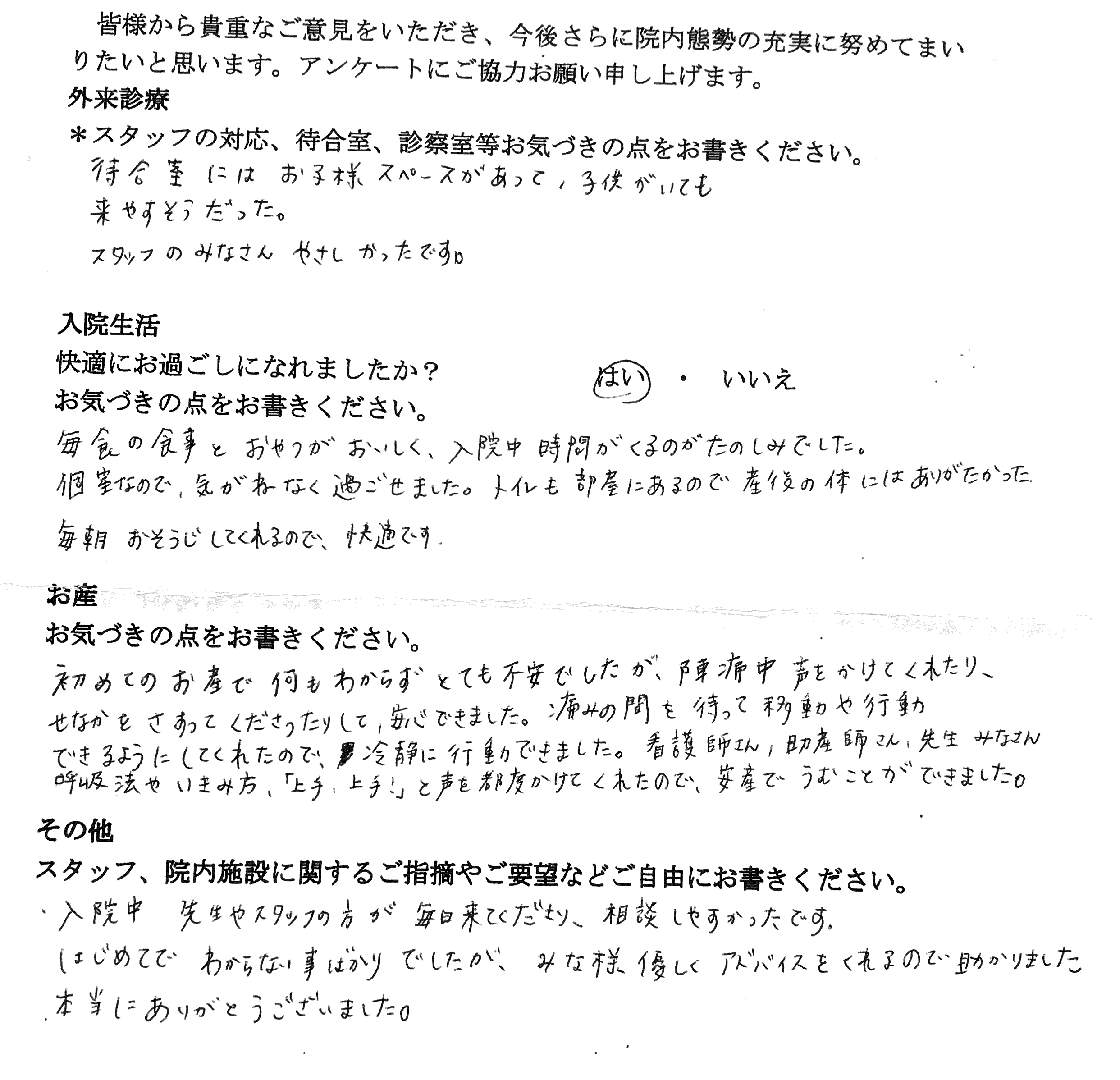 【外来診療へのご感想】