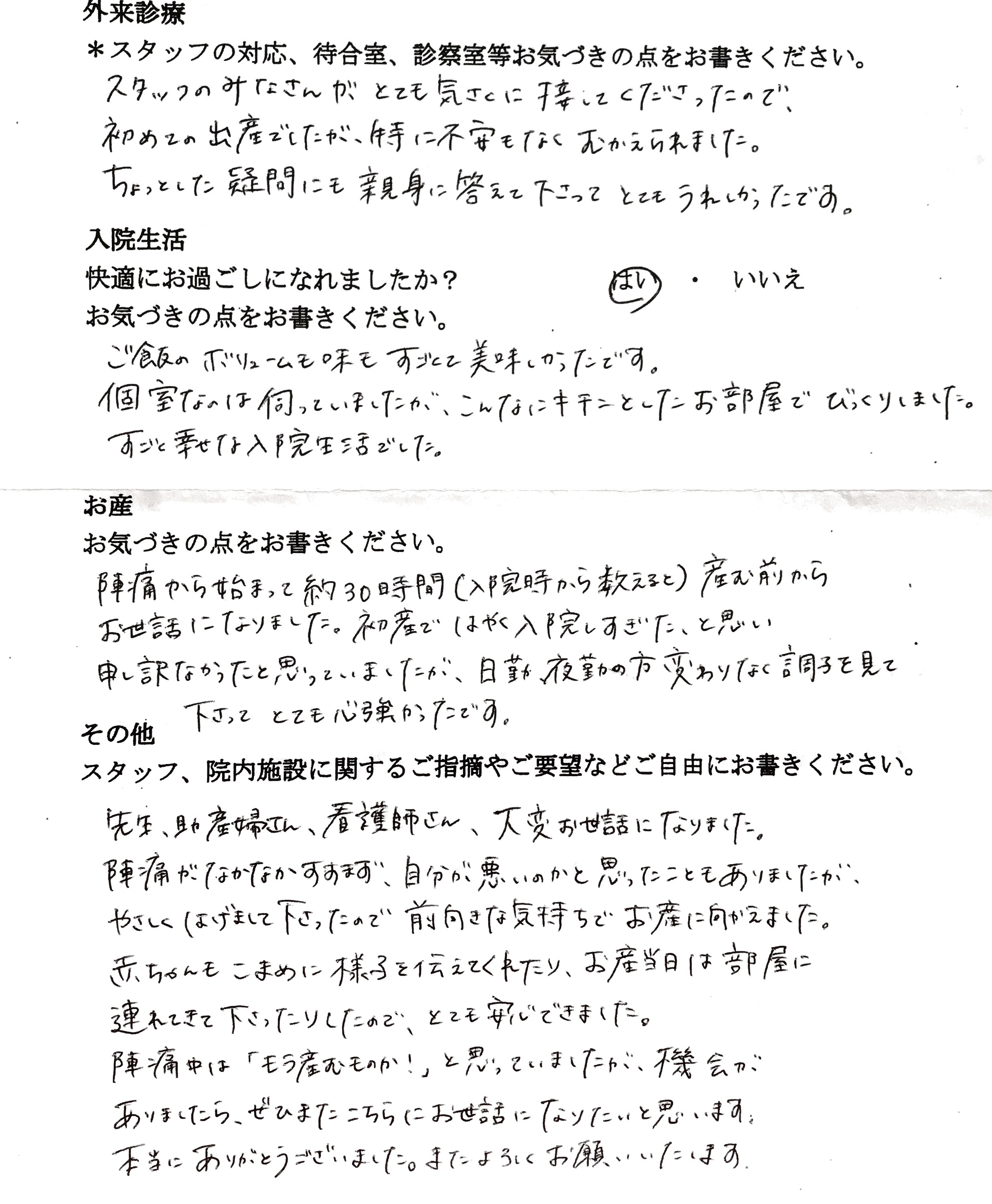 富士市・武田産婦人科ご出産のママの声 (NO.255)