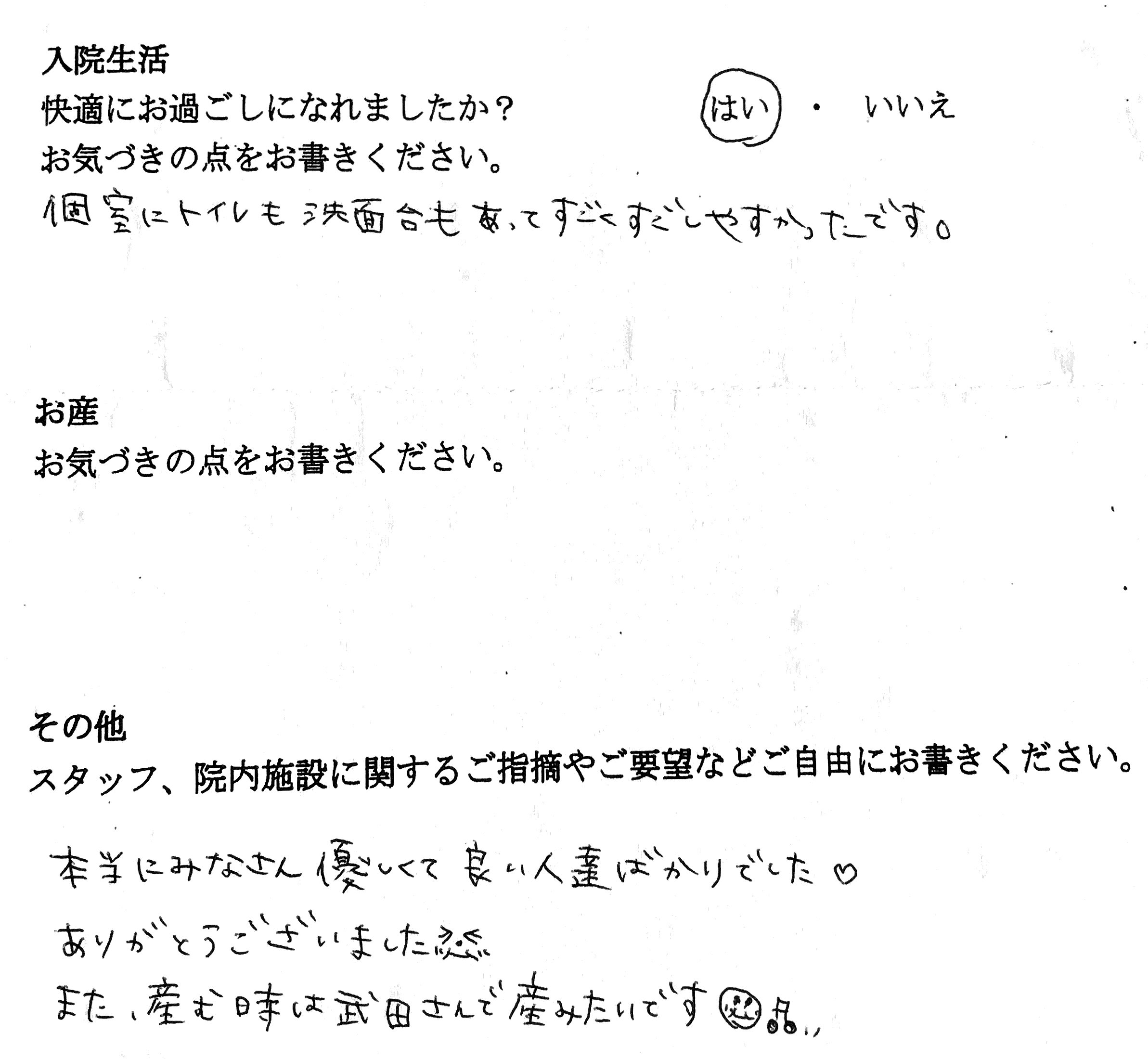 富士市・武田産婦人科ご出産のママの声 (NO.258)