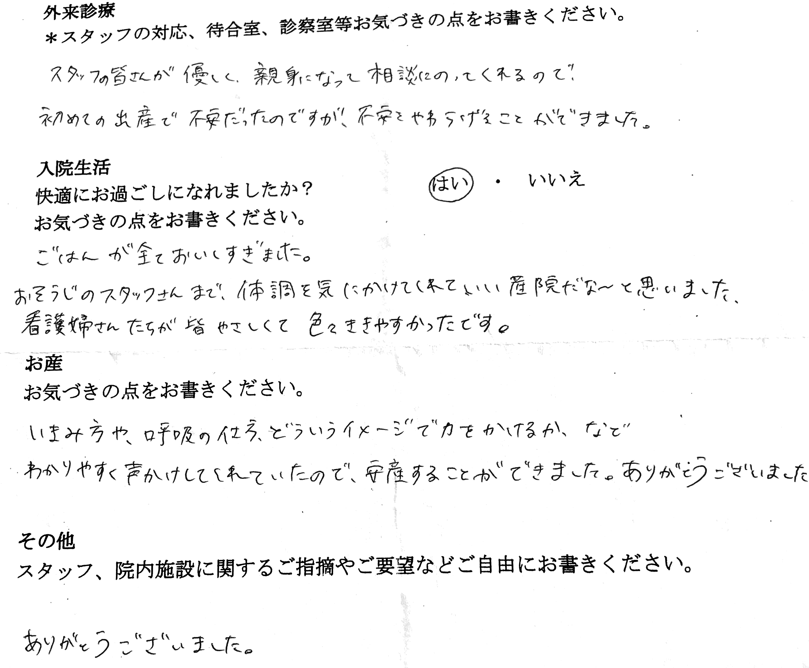 富士市・武田産婦人科ご出産のママの声 (NO.254)