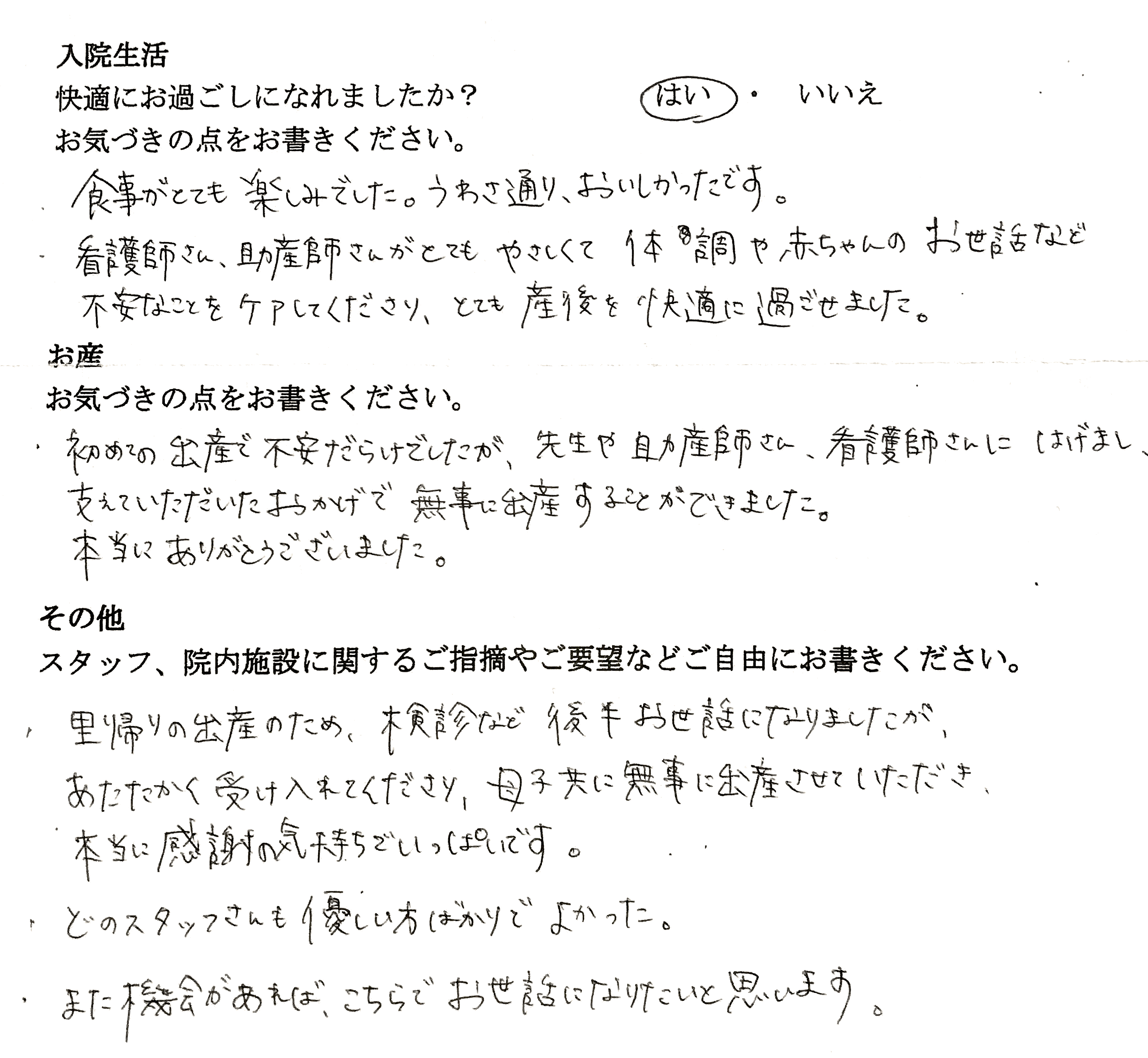 富士市・武田産婦人科ご出産のママの声 (NO.273)