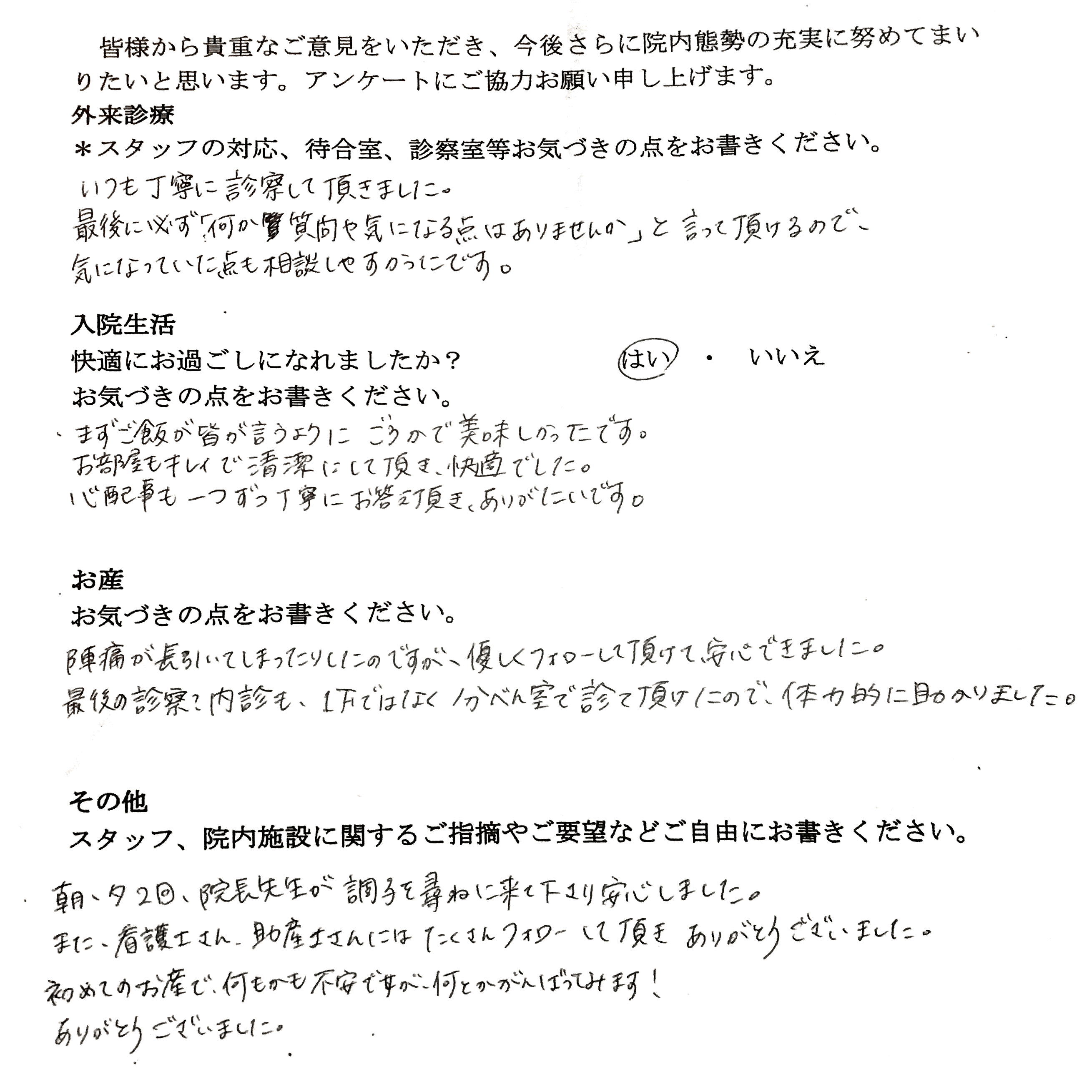 HOME > 当院ご出産のママの声 > 富士市・武田産婦人科ご出産のママの声 (NO.279)