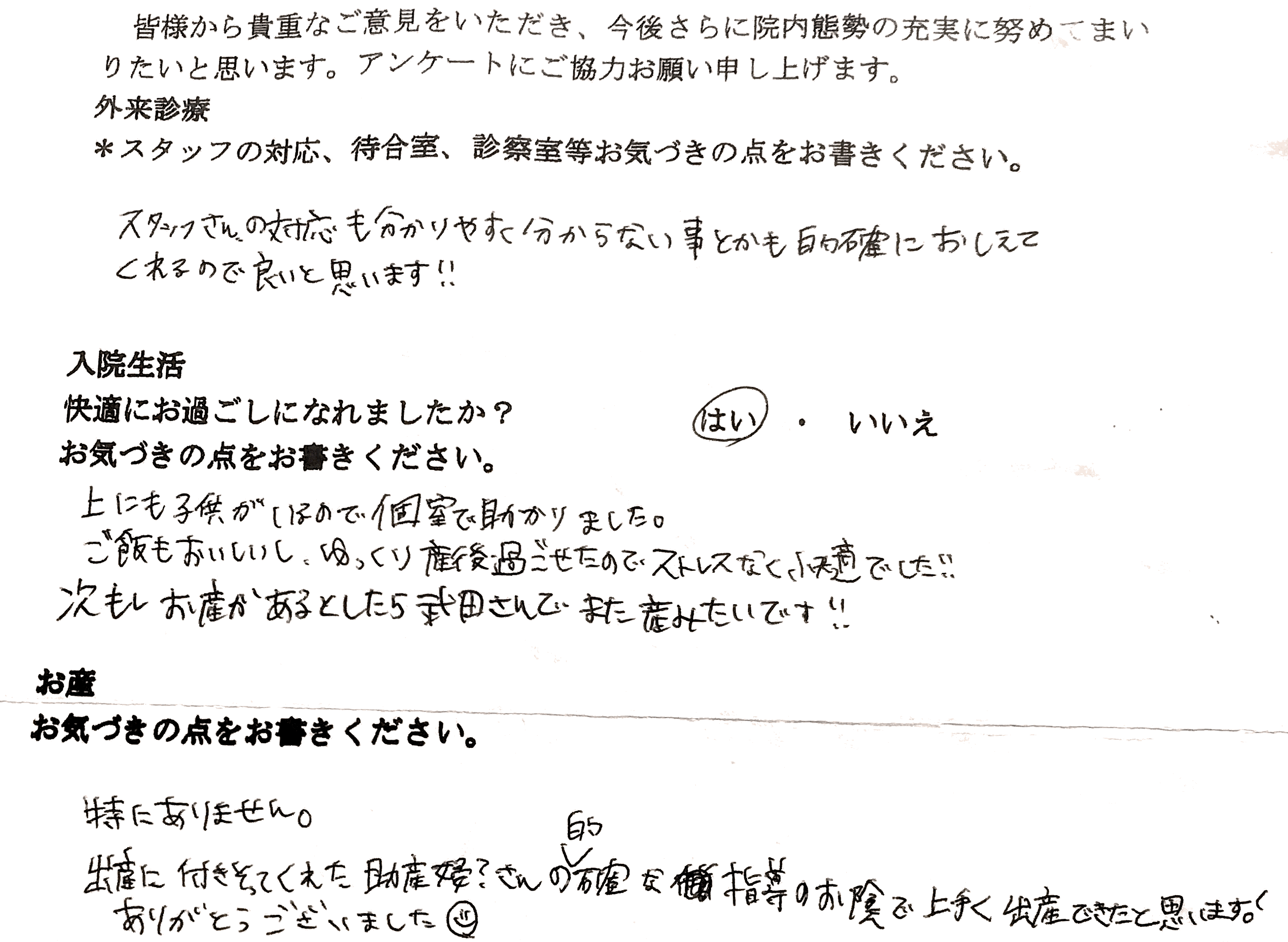 富士市・武田産婦人科ご出産のママの声 (NO.286)