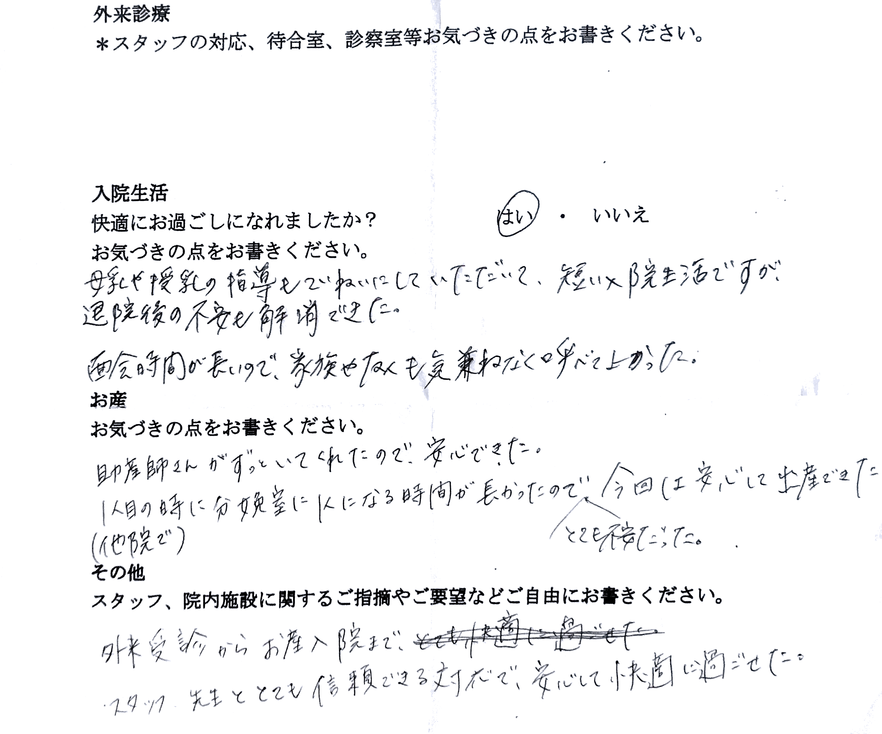 HOME > 当院ご出産のママの声 > 富士市・武田産婦人科ご出産のママの声 (NO.293)
