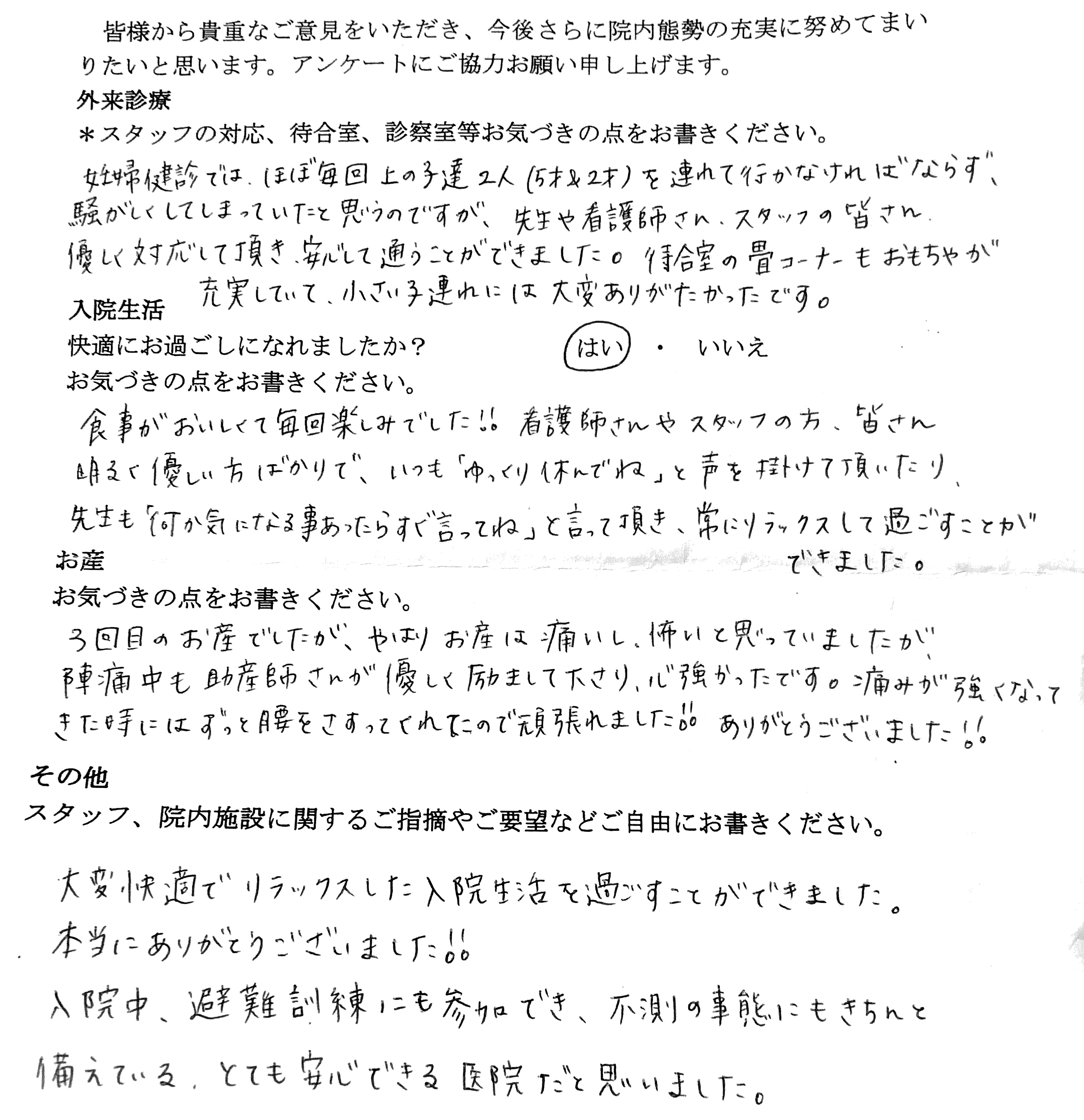 HOME > 当院ご出産のママの声 > 富士市・武田産婦人科ご出産のママの声 (NO.311)