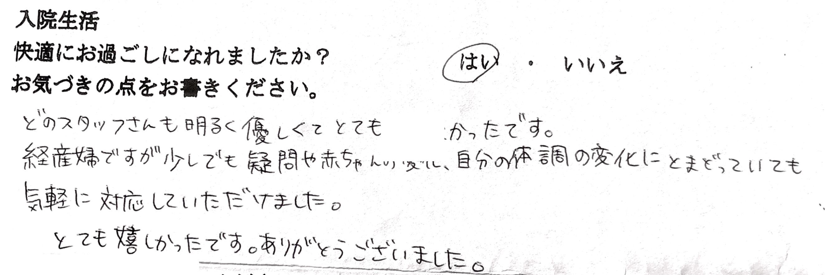 【入院生活へのご感想】