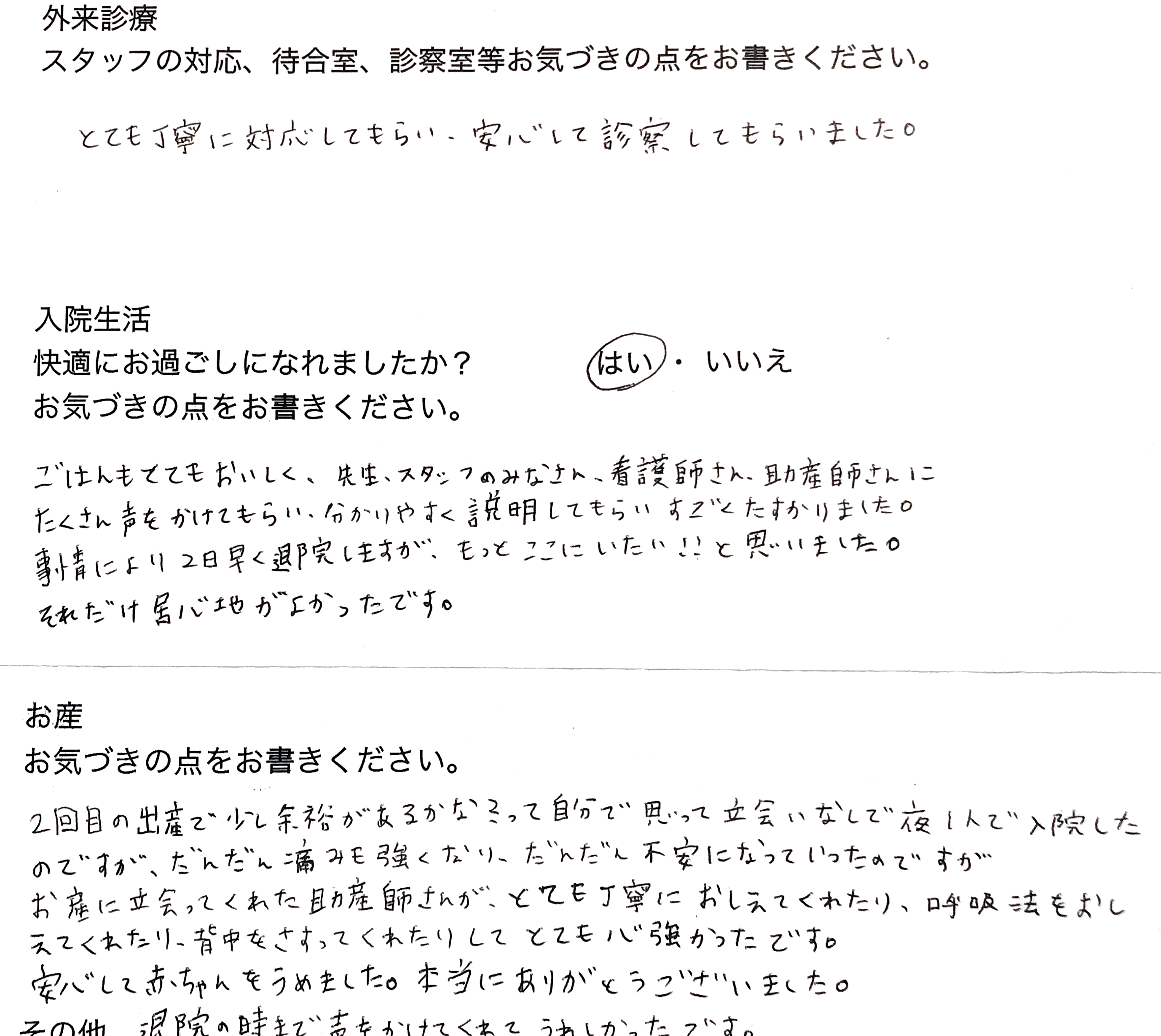 【お産についてのご感想】