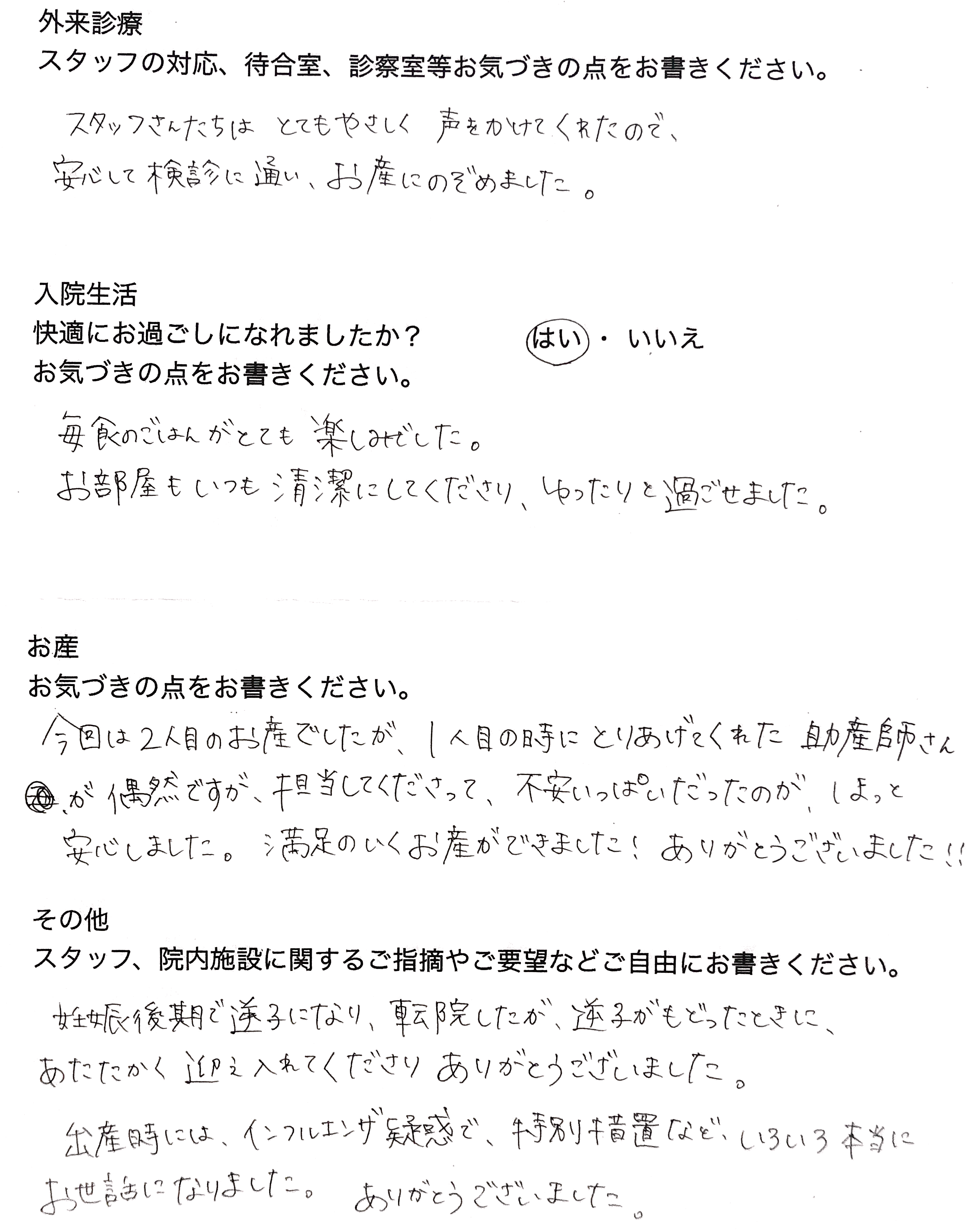 富士市・武田産婦人科ご出産のママの声 (NO.331)