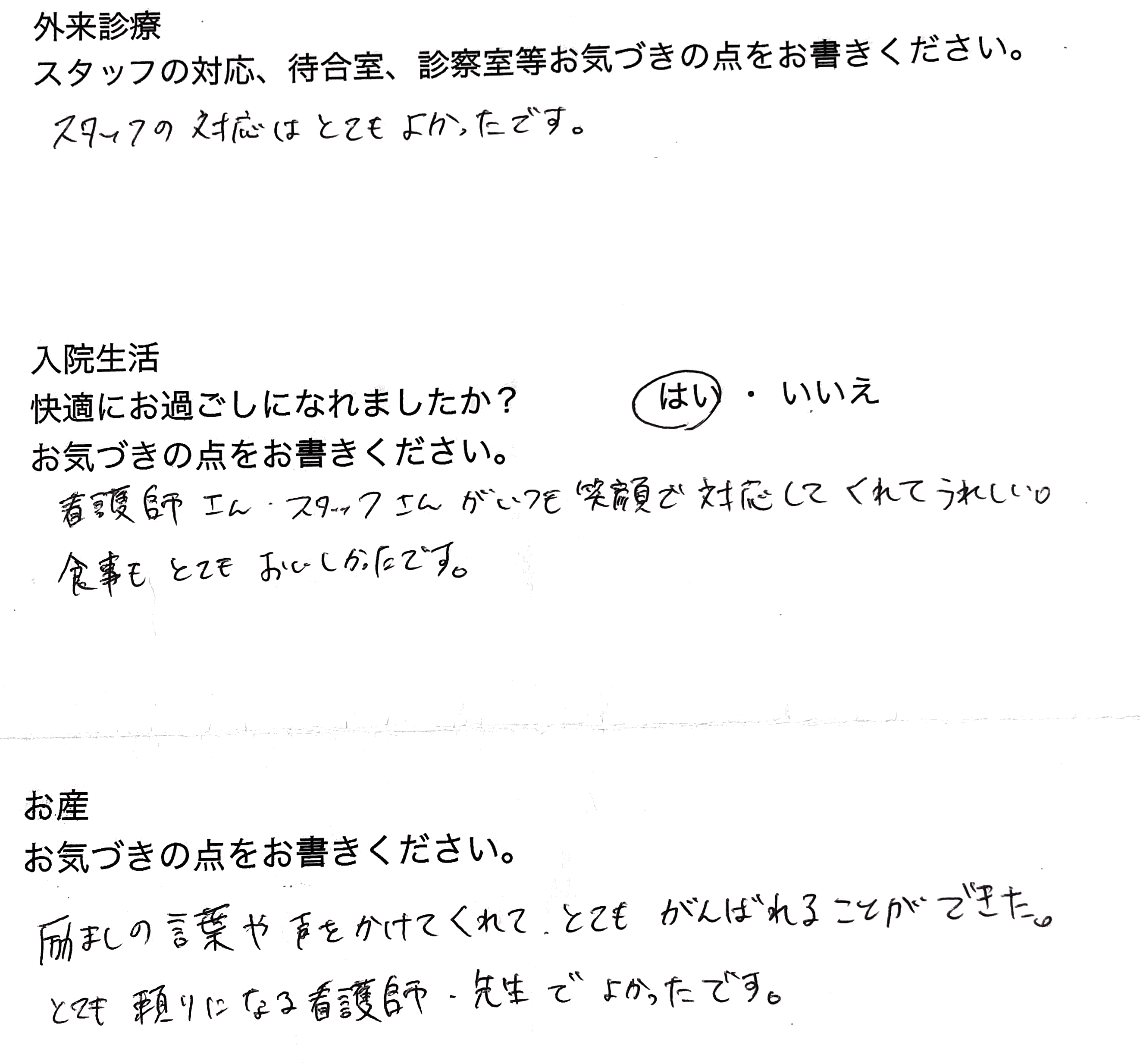 【お産についてのご感想】