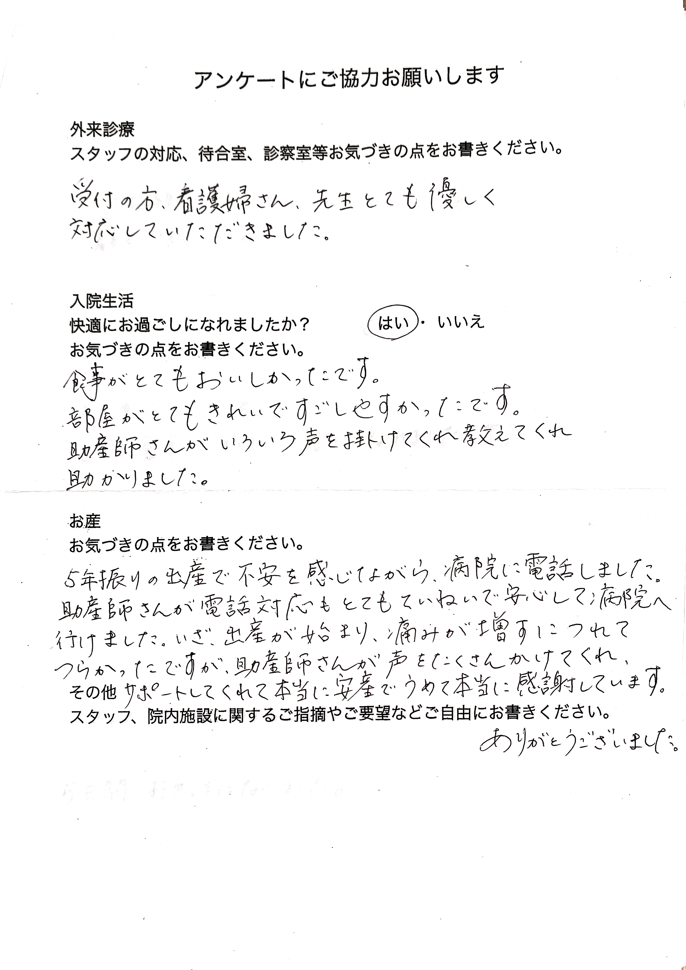 HOME > 当院ご出産のママの声 > 富士市・武田産婦人科ご出産のママの声 (NO.354)