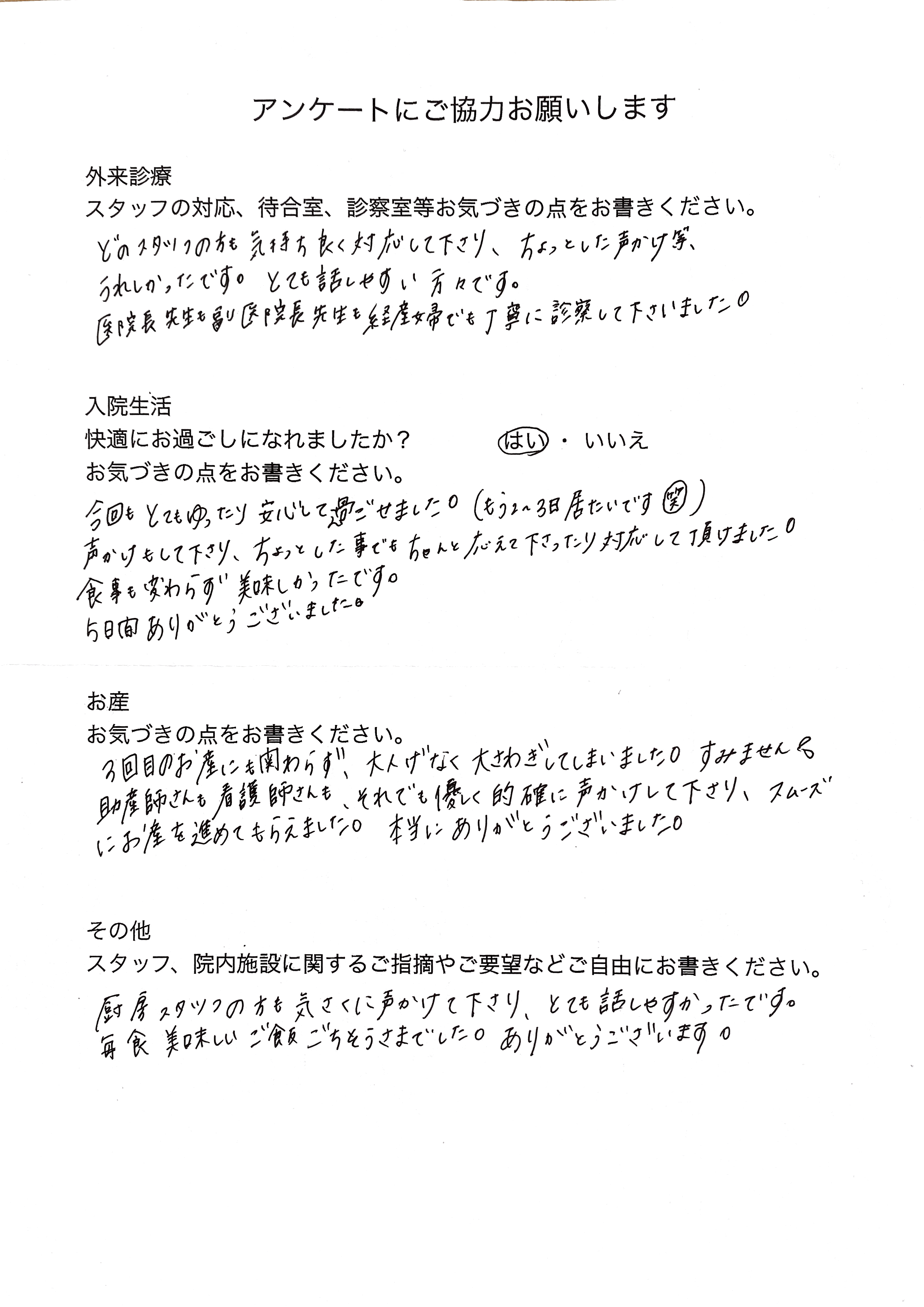 【スタッフ、院内施設に関するご感想】