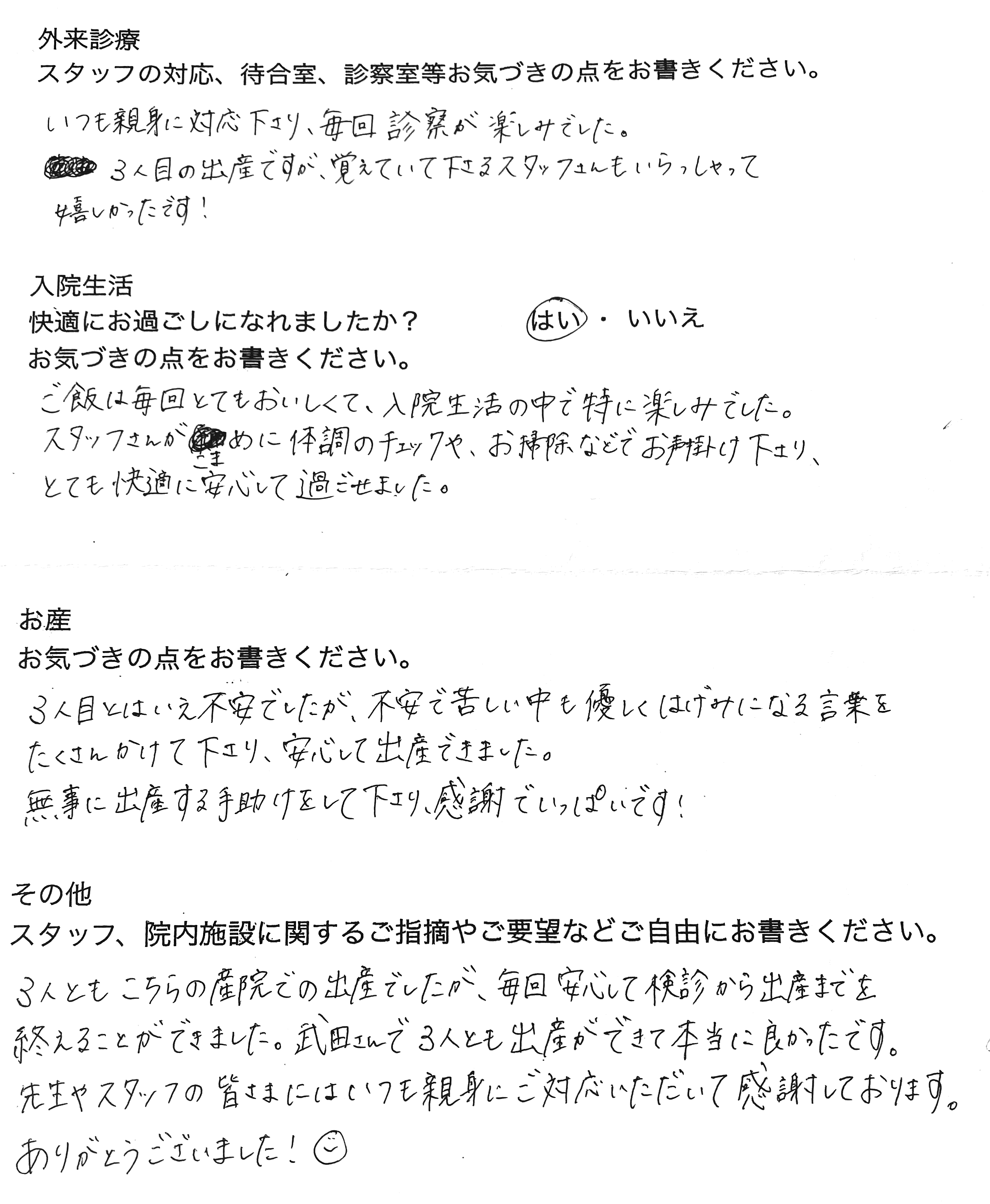 富士市・武田産婦人科ご出産のママの声 (NO.368)
