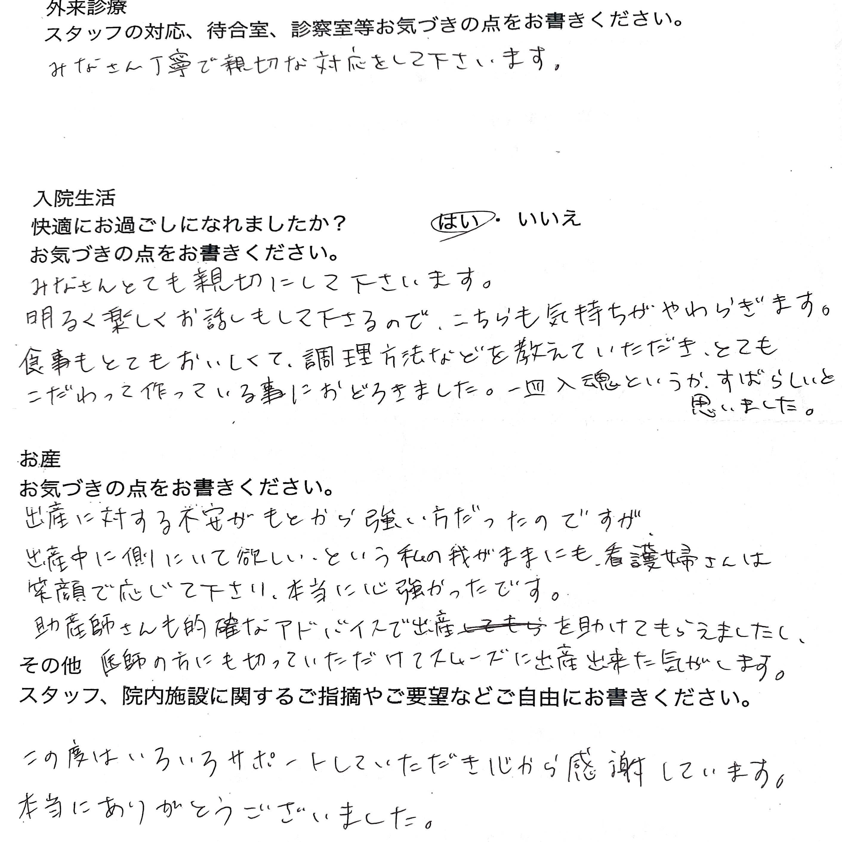HOME > 当院ご出産のママの声 > 富士市・武田産婦人科ご出産のママの声 (NO.373)