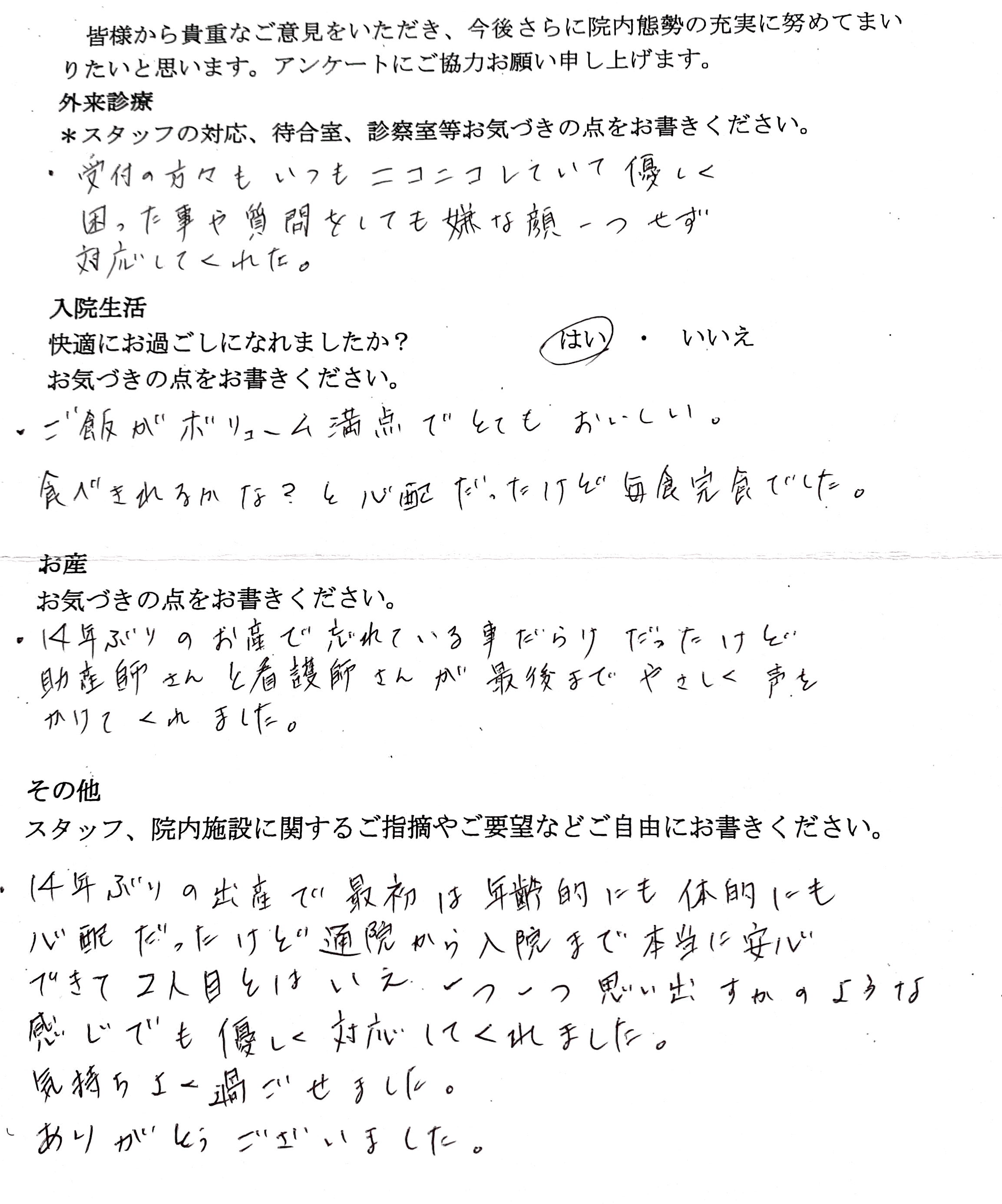 【外来診療へのご感想】