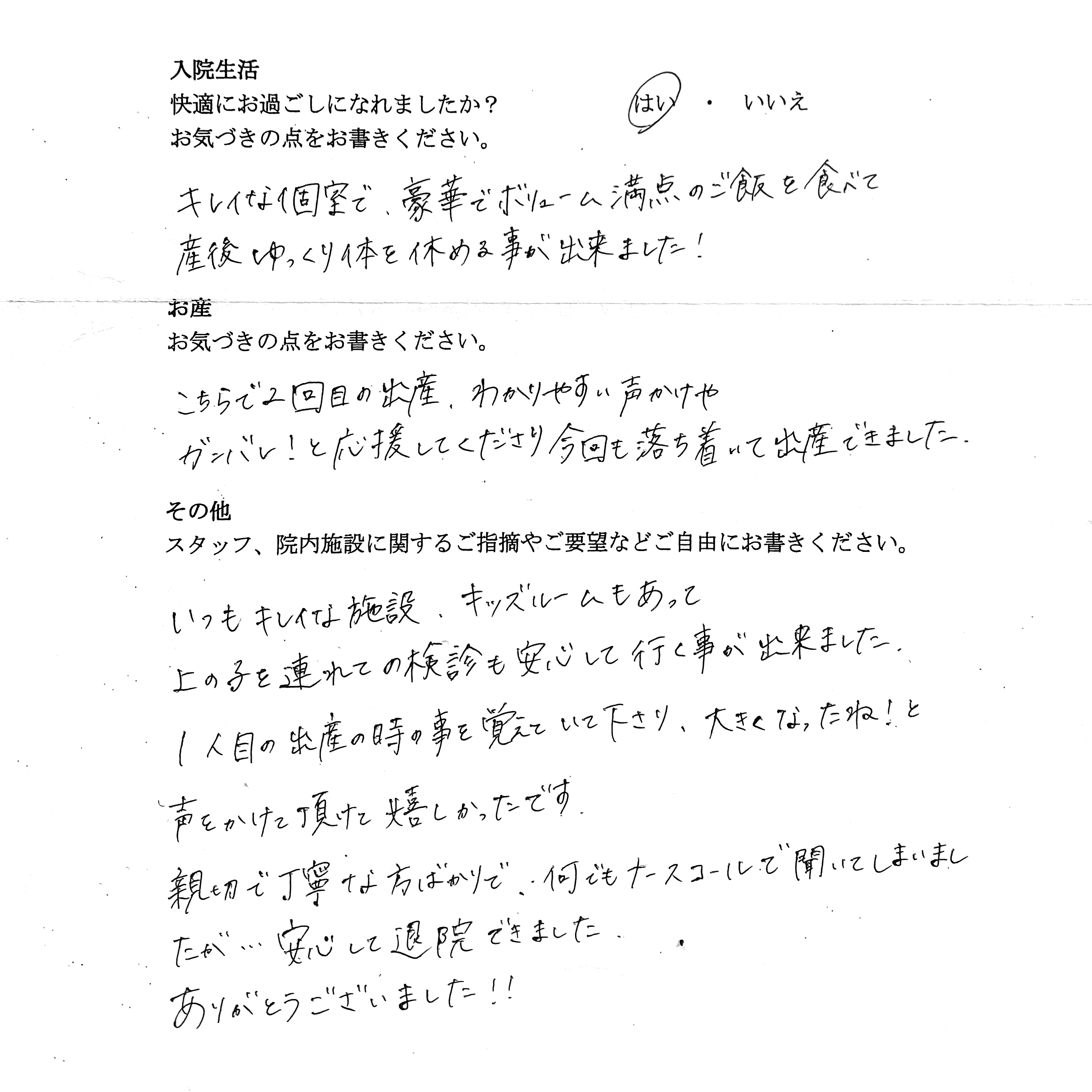 HOME > 当院ご出産のママの声 > 富士市・武田産婦人科ご出産のママの声 (NO.445)