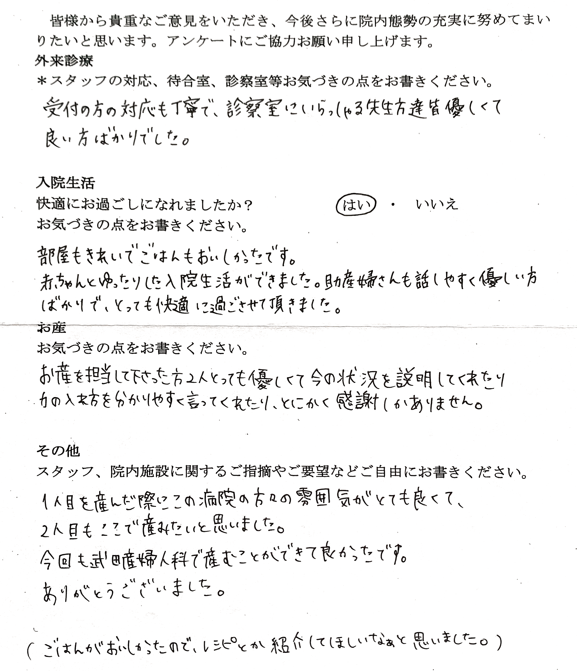 富士市・武田産婦人科ご出産のママの声 (NO.452)