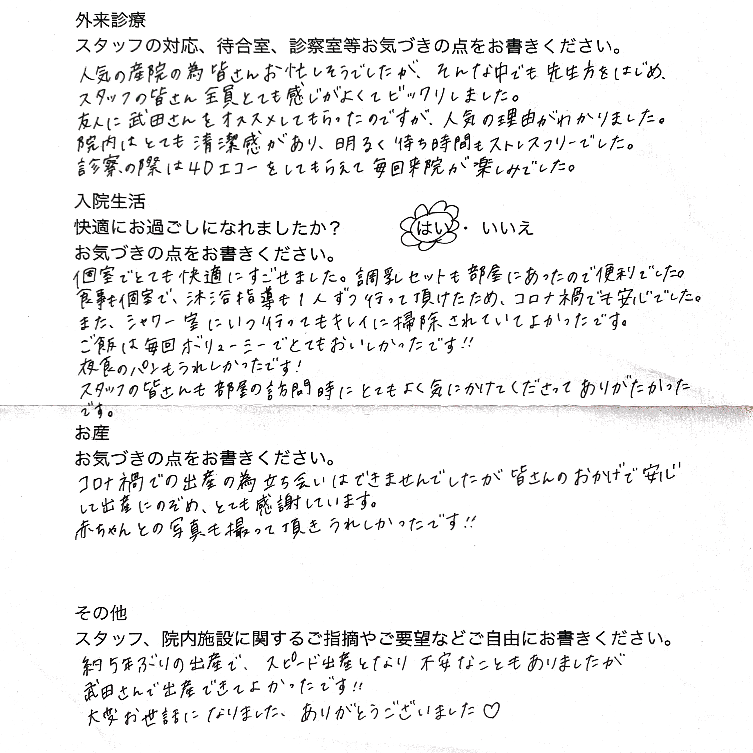 富士市・武田産婦人科ご出産のママの声 (NO.461)
