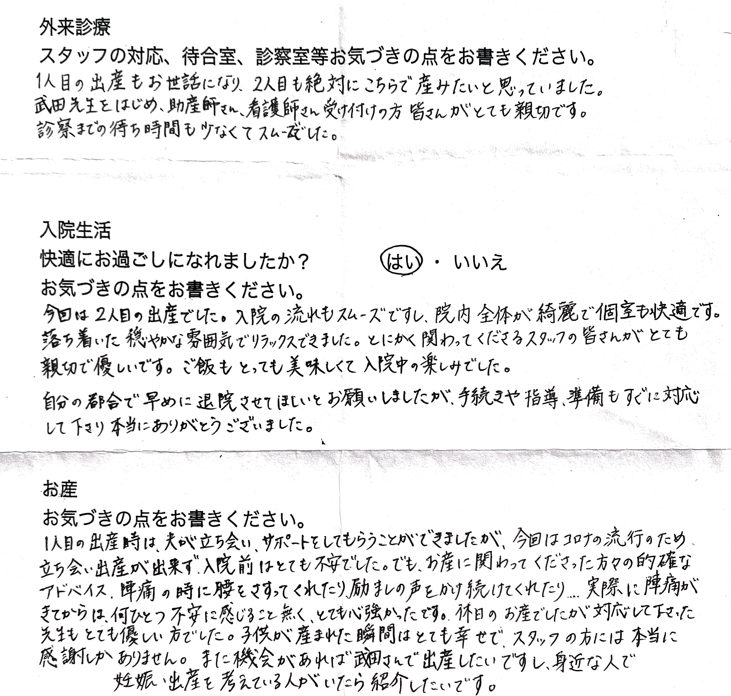 当院ご出産のママの声