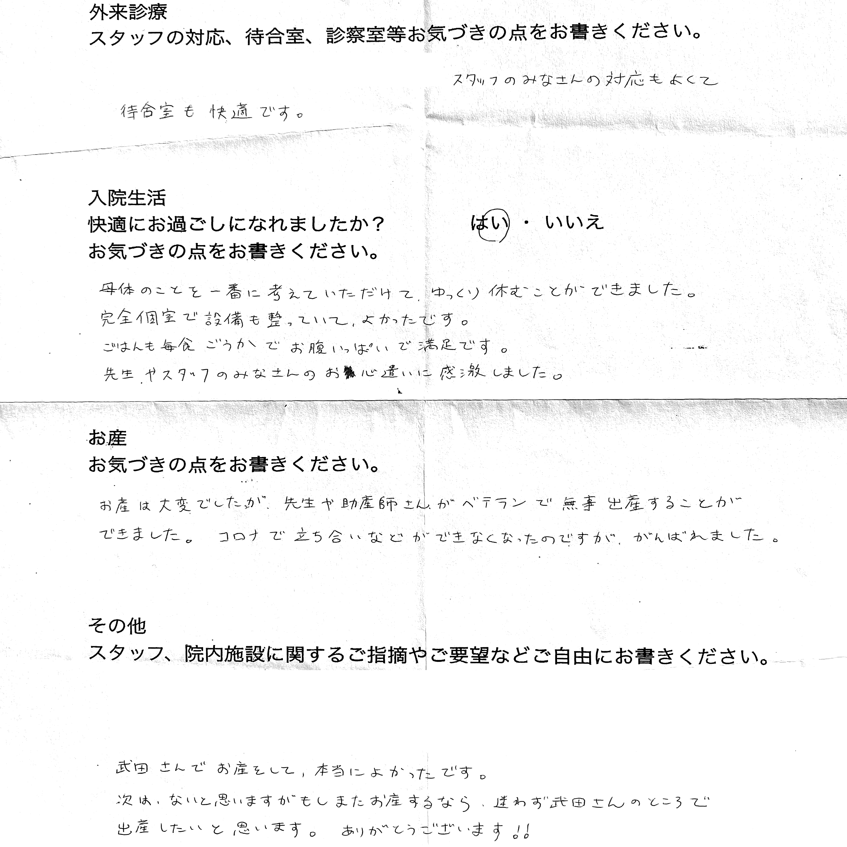 【外来診療へのご感想】