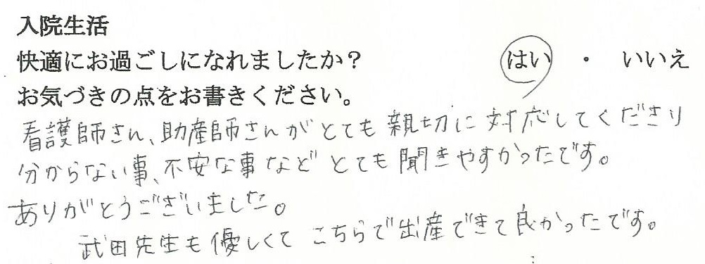 HOME > 当院ご出産のママの声 > 武田産婦人科ご出産のママの声 (NO.15)