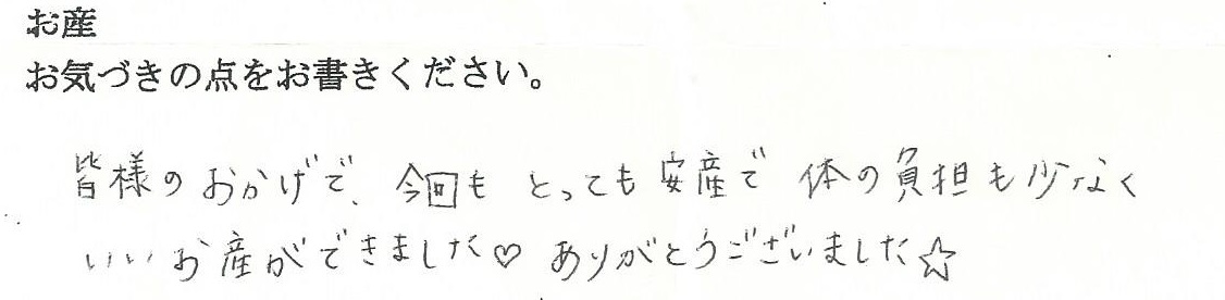 とっても安産で体の負担も