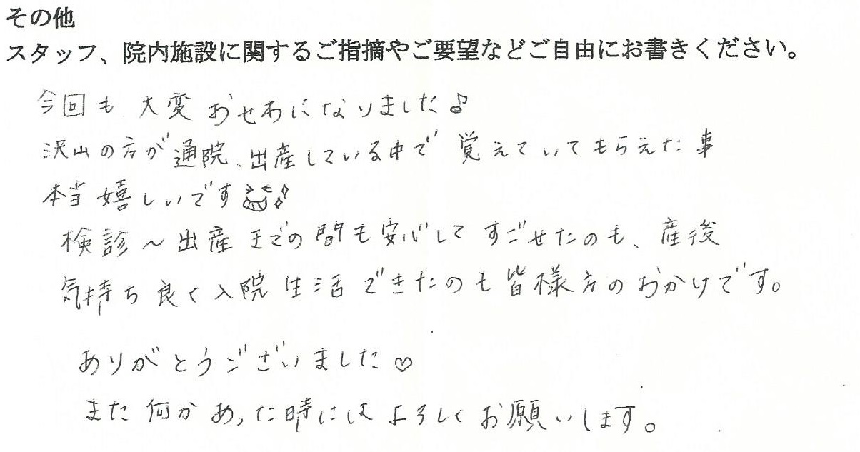 当院ご出産のママの声