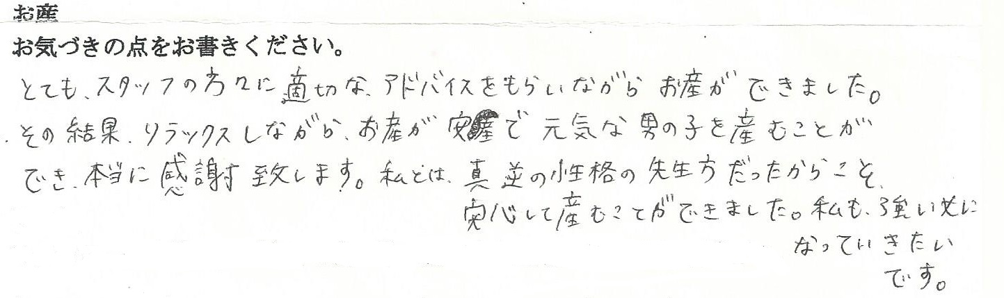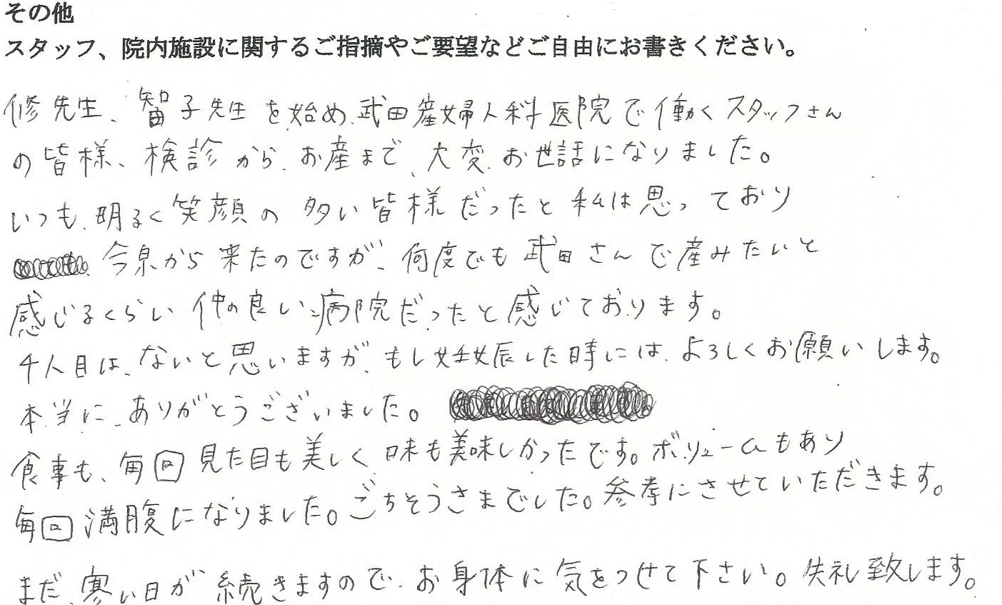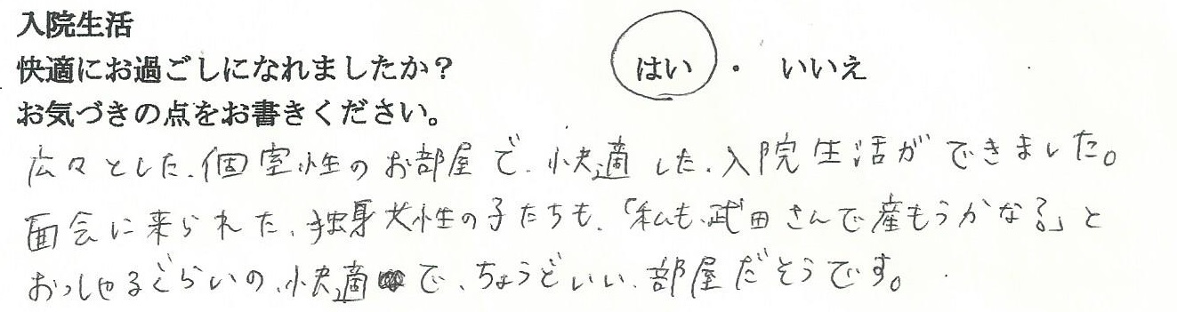 HOME > 当院ご出産のママの声 > 武田産婦人科ご出産のママの声 (NO.77)