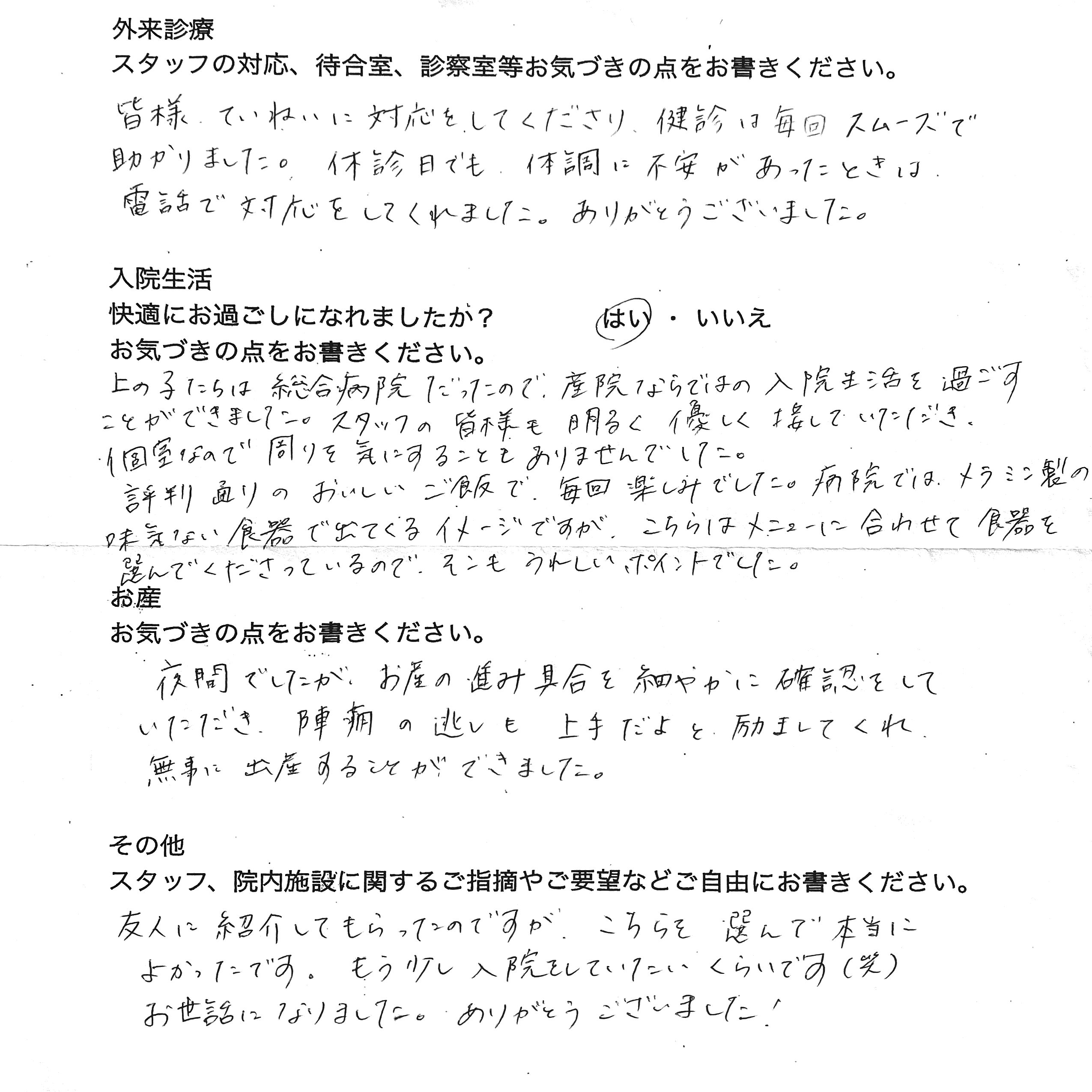 富士市・武田産婦人科ご出産のママの声 (NO.415)